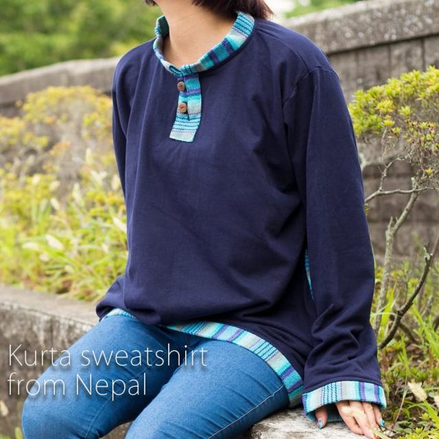 裏起毛が嬉しい!ゲリのクルタ風トレーナー / スウェット TIRAKITA(ティラキタ)
