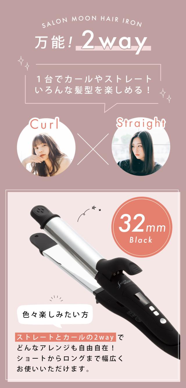 ヘアアイロン 2way \ランキング1位!最新モデル!送料無料!/ チタニウムプレート ストレート & カール コテ 32mm <誤動作防止 新搭載> 海外対応 プロ仕様 業務用 220℃ 2wayアイロン カールアイロン ヘアーアイロン SALONMOON サロンムーン