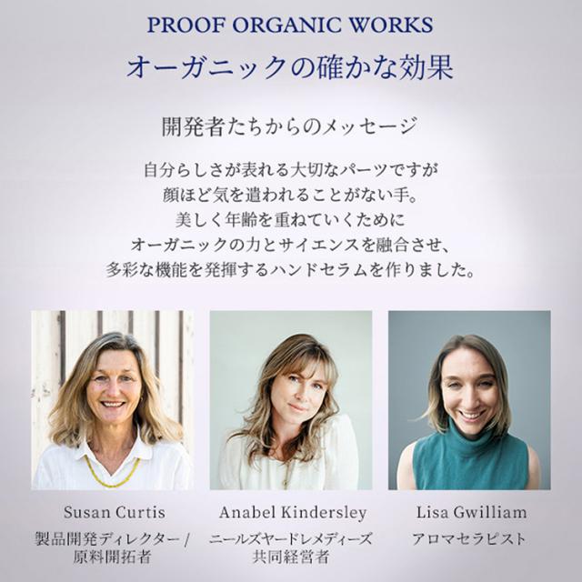| 水、ヒマワリ種子油、グリセリン、ダイズ油*、セテアリルアルコール、キサンタンガム、カニナバラ果実油*、ブラジルナッツノキ種子油*、ルリジサ種子油*、アーモンド油*、ベンジルアルコール、ウコン根エキス、リボース、スクレロチウムガム、アルガニアスピノサ核油*、シア脂*、ブドウ種子油*、レブリン酸、ボスウェリアサクラ樹脂油*、アロエベラ葉汁*、ソルビン酸K、レブリン酸Na、マンダリンオレンジ果皮油*、トコフェロール、ベルガモット果皮油*、ヒアルロン酸Na、コミフォラコンフザ樹脂油*、ビターオレンジ花油*、モツヤクジュ油*、ボスウェリアネグレクタ樹脂油*、フサザキスイセン根エキス* (*オーガニック成分) |