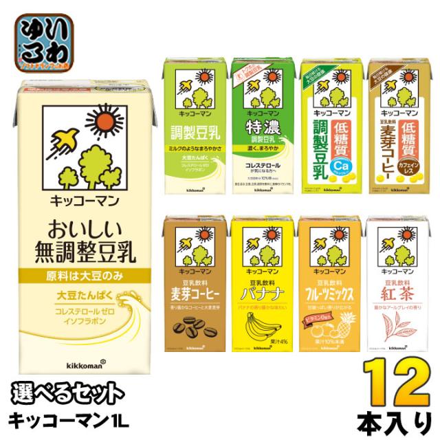 キッコーマン 豆乳 1L 紙パック 選べる 12本 (6本×2) よりどり 豆乳飲料 1000ml 無調整 調製豆乳 特濃 低糖質 麦芽コーヒー バナナ 紅茶 ソイ ダイズ