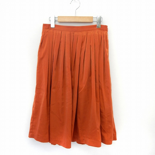 【中古】STYLE DELI スタイルデリ スカート プリーツ フレア 膝丈 サイドジップ シンプル M オレンジ /ST35