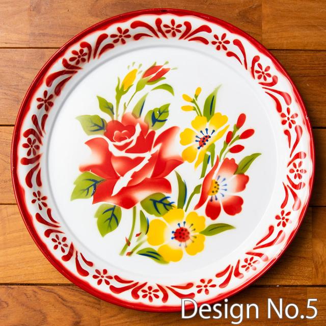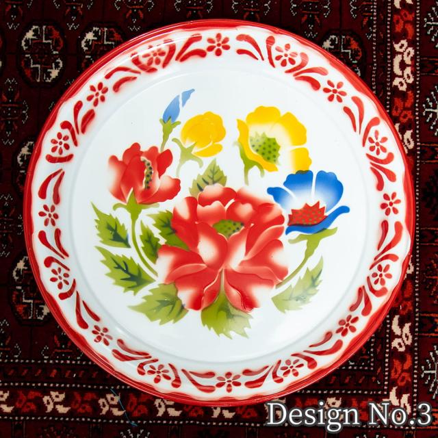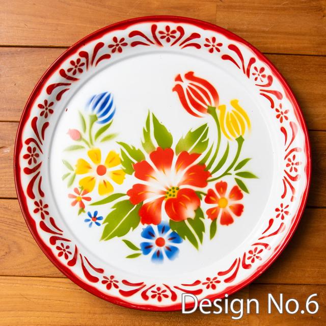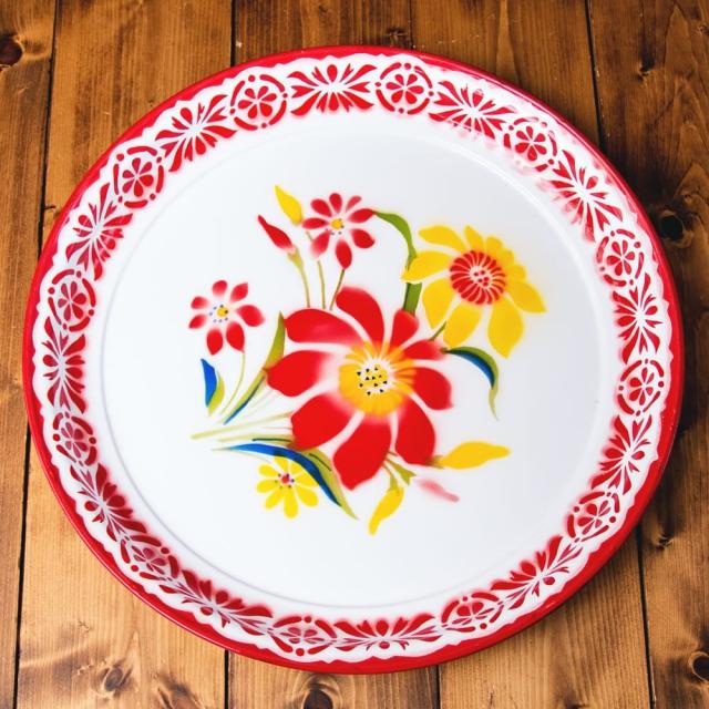 あたたかみのあるレトロなデザインがたまらない。タイからやってきたホーローの飾り皿です。ベースは白色で、その上に色鮮やかなフローラル系のペイントが施されているのが特徴。昔の花柄がプリントされた、お鍋などの調理器具を彷彿とさせます。昭和レトロ感が溢れるデザインが素敵です。