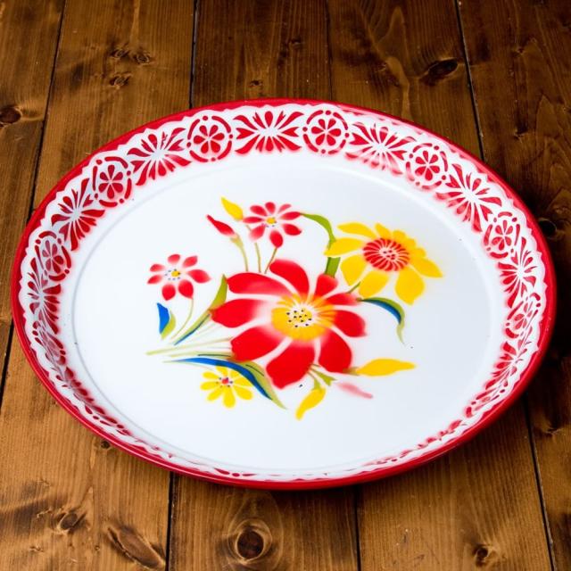 タイのレトロホーロー 花柄飾り皿 トレー RABBIT BRAND〔約45cm×約4.3cm〕 / 昭和レトロ ラビットブランド ほうろう アンティーク インド雑貨 エスニック アジア