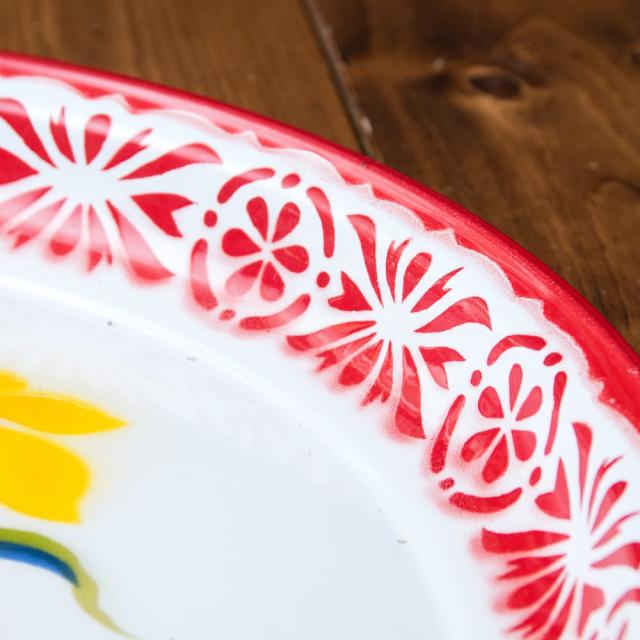 | ご注意 | ハンドメイドの工程が多いため、塗りムラや小さなキズ、ペイントの部分的な剥がれなどがある場合がございます。サイズや、ペイントに若干個体差があることがございます。また、昔ながらの製法で作られている為、縁の部分などに若干の欠けなどがある場合がございます。手作り品の特性となっておりますのでご了承ください。 また、こちらのお皿は食器ではなく飾り皿となります。昔ながらの製法で作られている為、食品用として作られておりません。食品を直に置いてのご使用はお控えください。 |