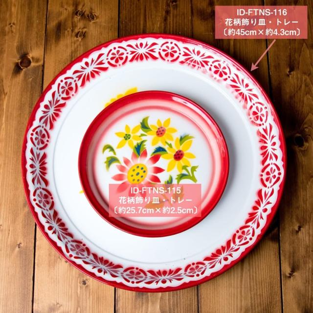 タイのレトロホーロー 花柄飾り皿・トレー RABBIT BRAND〔約45cm×約4.3cm〕 / 昭和レトロ、レトロ、飾り皿、ラビットブランド、ホーロー、ほうろう、琺瑯、エナメル、ホーロー、かわいい RABBIT BRAND インドとアジア雑貨 【インドとアジアン雑貨