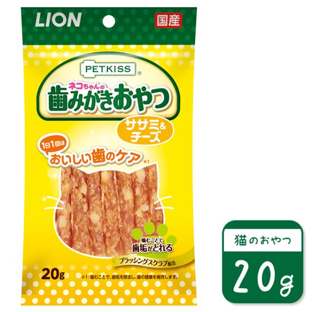 ライオン PETKISS ネコちゃんの 歯みがき おやつ ササミ&チーズ 20g ■ キャットフード 国産 ドライ おやつ ペットキス デンタル 口臭 歯垢 ケア