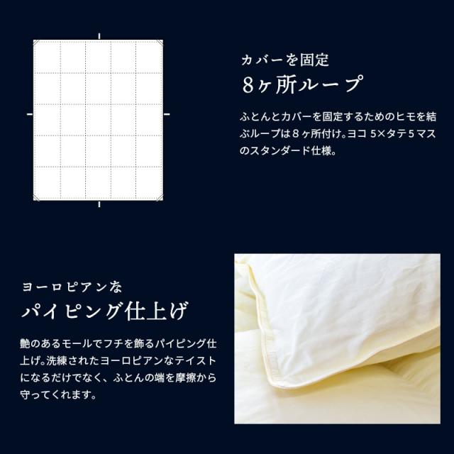 | 詰め物 | ハンガリー産ホワイトマザーグース ダウン95%、フェザー5%(合計充填量1.2kg) |