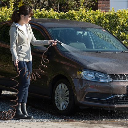 巻き取り不要!伸縮するスパイラル状ホース。