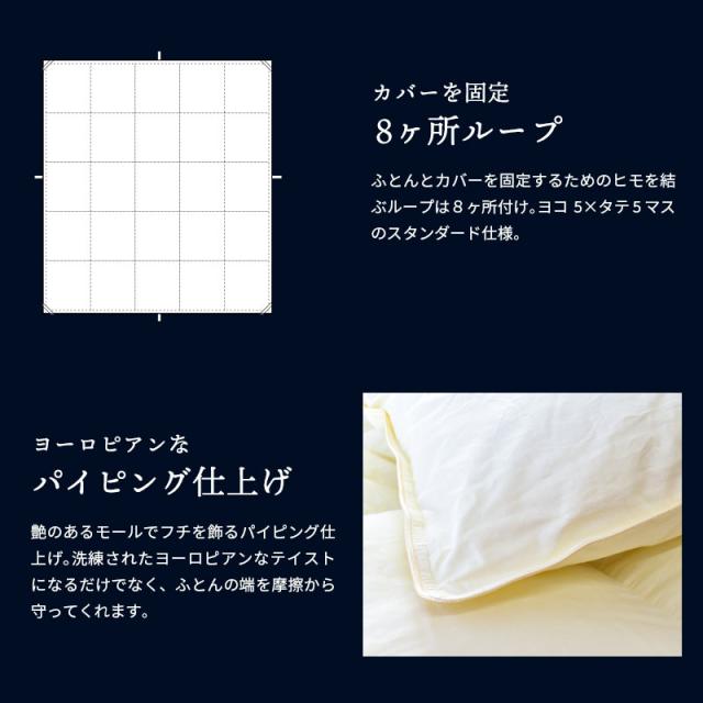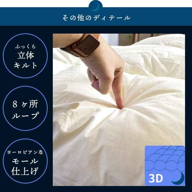 | 詰め物 | ハンガリー産ホワイトマザーグース ダウン95%、フェザー5%(合計充填量1.4kg) |