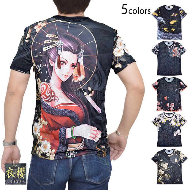 昇華和柄半袖Tシャツ 衣櫻 SA1347 和柄 和風 昇華転写プリント フルカラー ジャガード[mij_m][mij]