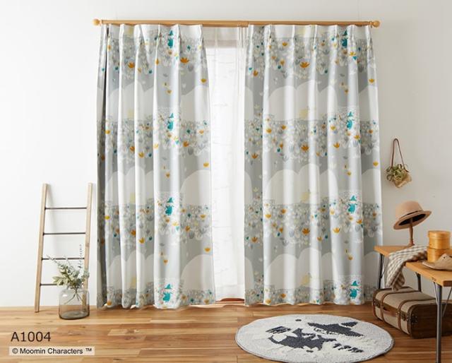 北欧 デザインカーテン ムーミン 既製サイズ 約幅100×丈200cm ソフトメロディ (S) 洗える 遮光 日本製 おしゃれ 引っ越し 新生活