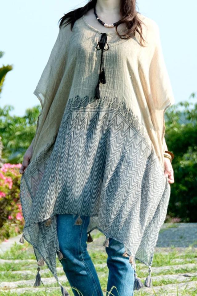 チュニック,コットン チュニック,ウッドブロック チュニック,カフタン,フリーサイズ,ストール,セット