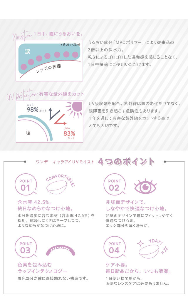 ワンデーキャラアイ UVモイスト / ワンデーキャラアイカラーシリーズ (1箱30枚入り)( 送料無料 ワンデー 度あり カラーコンタクト カラコンワンデー ワンデーカラコン 1day Cara Eyes UV Moist Color Series )