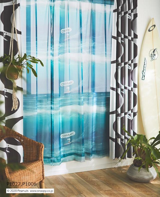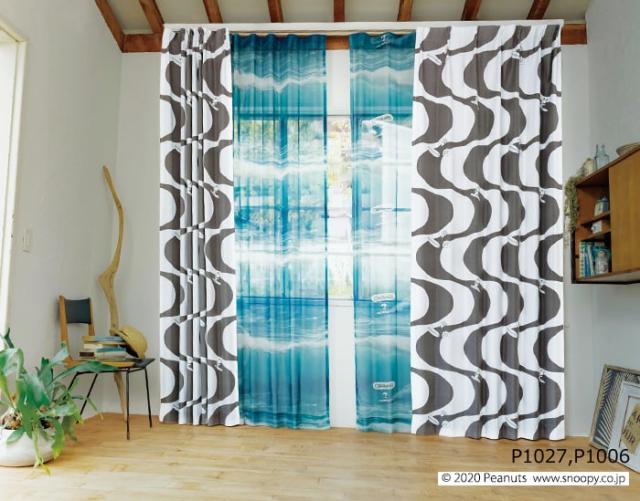 キャラクター デザインレースカーテン スヌーピー ピーナッツ 既製サイズ 約幅100×丈133cm P1027 カワバンガ!ボイル (S) 洗える 日本製 おしゃれ 引っ越し 新生活