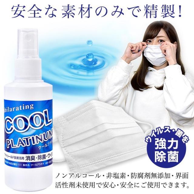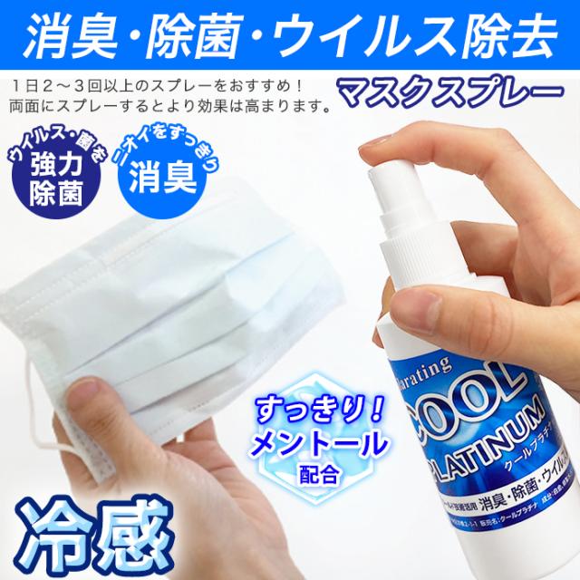 冷感 マスク スプレー 涼感 100ml クール 消臭 除菌 クールプラチナ ハッカ油 メントール ミント クール マスク NANOプラチナ 花粉 対策 長時間除菌 強力除菌 ノンアルコール 非塩素 防腐剤無添加 日本製 国産 送料無料