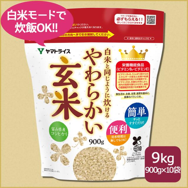 お米 米 白米と同じように炊けるやわらかい玄米 900g×10袋 令和7年産 北海道・沖縄は送料900円