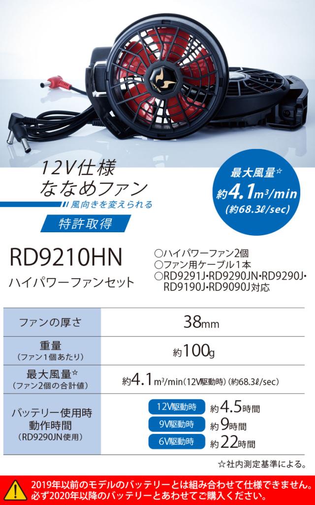 空調風神服 ベスト 050 RD9291J RD9210HN/RD9220HN 日本製12Vバッテリー/ハイパワーファンセット 撥水 アタックベース 電動ファン付ウェア 作業服 作業着 空調作業服 ファン付きウェア 熱中症対策 夏
