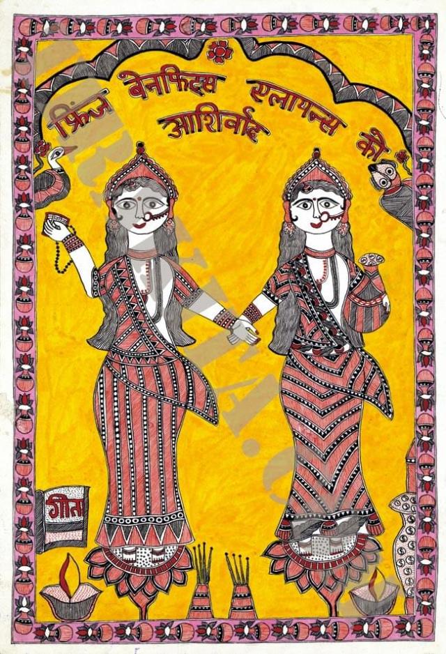 ミティラー画のポスター インドの女性 / 神様 本 印刷物 ステッカー ポストカード