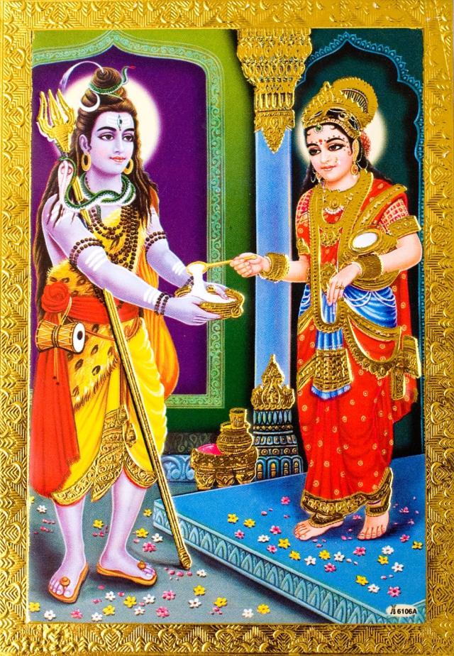 金の神様ポストカード 恵みを受けるシヴァ / ポスター ゴールド インド 本 印刷物 ステッカー
