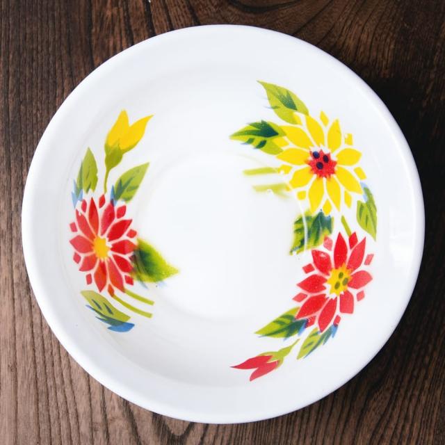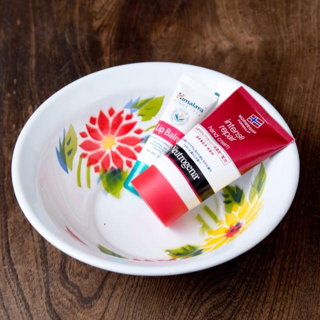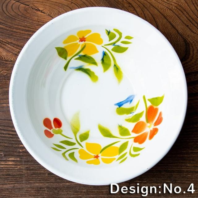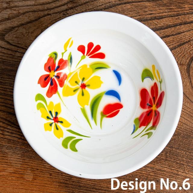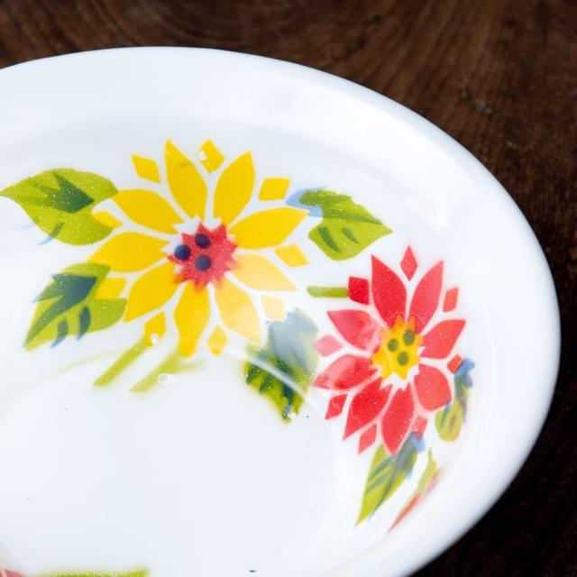 あたたかみのあるレトロなデザインがたまらない。タイからやってきたホーローの飾り皿です。ベースは白色で、その上に色鮮やかなフローラル系のペイントが施されているのが特徴。昔の花柄がプリントされた、お鍋などの調理器具を彷彿とさせます。昭和レトロ感が溢れるデザインが素敵です。