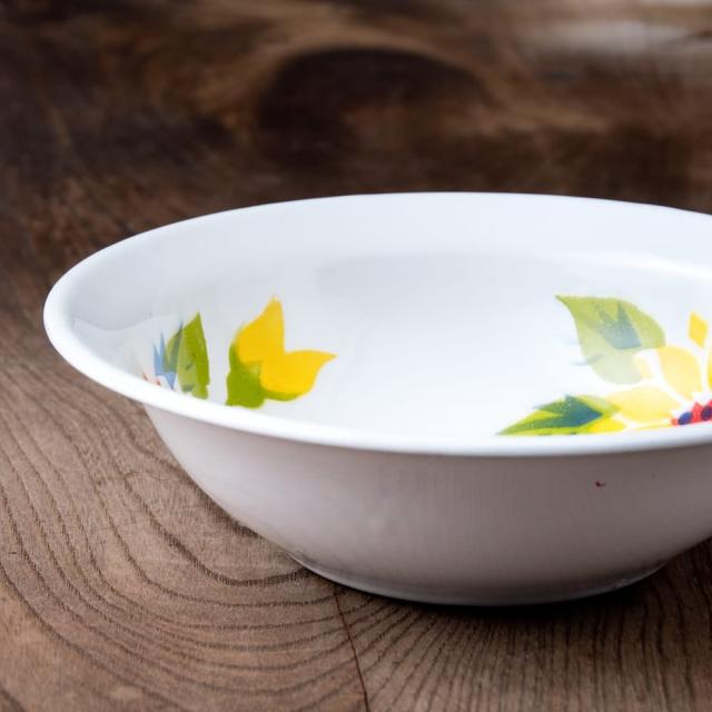 タイのレトロホーロー 花柄飾りボウル RABBIT BRAND〔約18.5cm×約5.2cm〕 / 昭和レトロ、レトロ、飾り皿、ラビットブランド、ホーロー、ほうろう、琺瑯、エナメル、ホーロー、かわいい RABBIT BRAND インドとアジア雑貨 【インドとアジアン雑貨