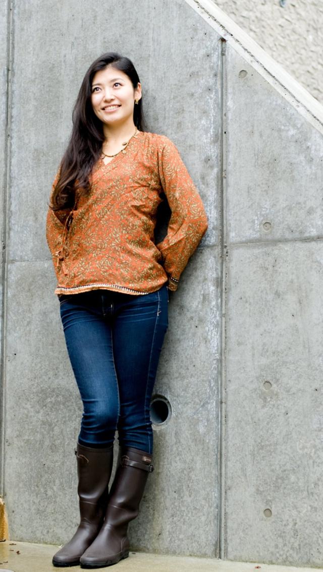 身長165cmのモデル着用例です。リバーシブルなのでその日の気分でお楽しみ頂けます。