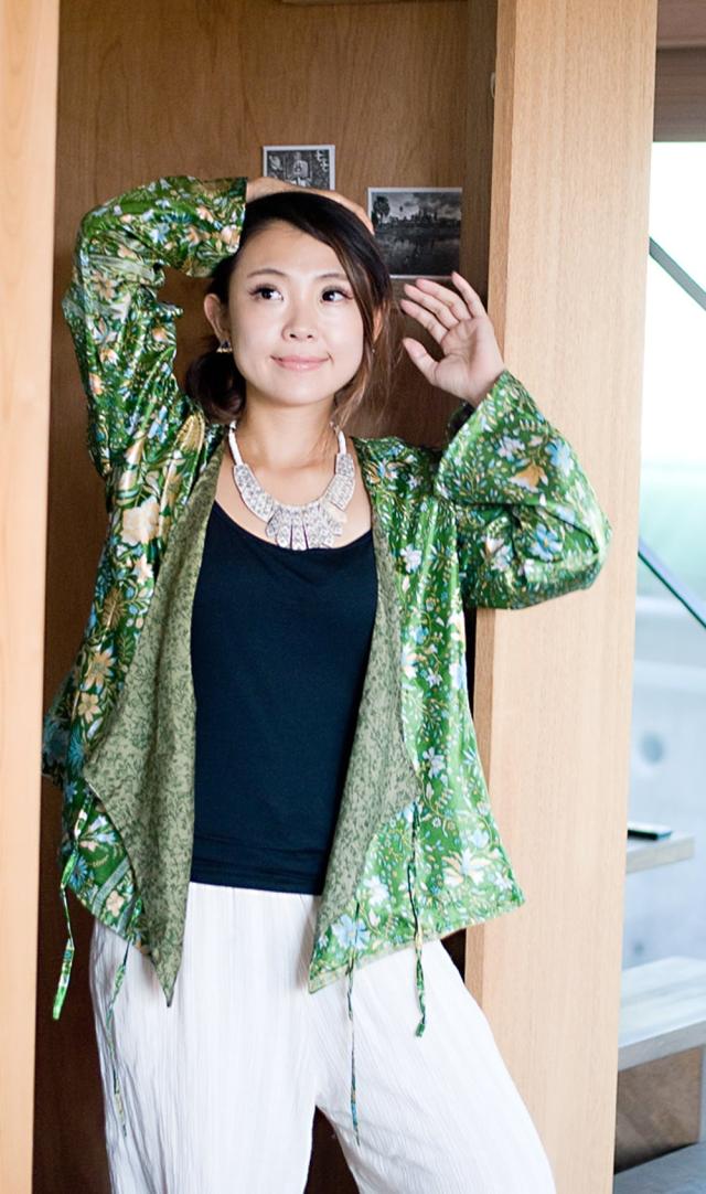 シルクが含まれているインドのオールドサリーを使った長袖は、ちょっと羽織るのにピッタリ。リサイクルのオールドサリーを使っていますので、同じ柄はなく一点もの。自分だけの特別な1枚になるというのも嬉しいポイントです。