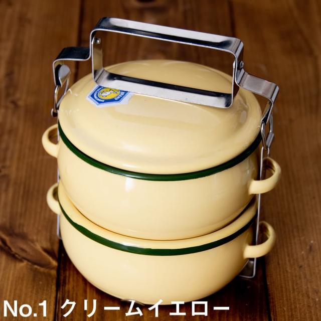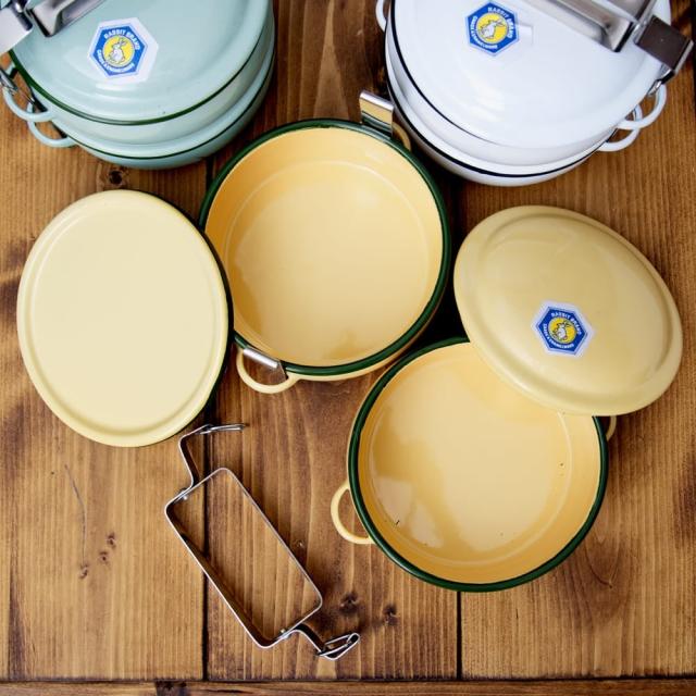 あたたかみのあるレトロなデザインがたまらない。タイからやってきたホーローのお弁当箱です。お弁当箱の構造としては、インドのステンレス製お弁当箱と同じですが、ホーロー製なので雰囲気は全く異なります。
