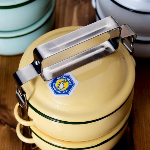 〔2段〕RABBIT BRAND タイのレトロホーローお弁当箱〔約17cm×約13.2cm〕 / 弁当箱、ランチボックス、ラビットブランド、ホーロー、ほうろう、琺瑯、エナメル、キャンプ、朝食、ホーロー、かわいい、レトロ インド アジアの食材 【インドとアジアン食品・食材