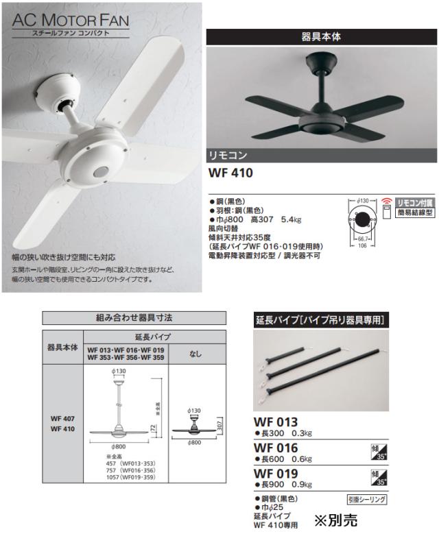 【軽量】WF410 LEDシーリング ACモーターファン 器具本体 (黒色)