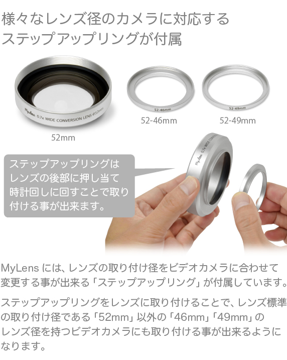 広角 コンバージョンレンズ ビデオカメラ用「My Lens マイレンズ 薄型 0.7倍 ワイド レンズ」 46mm 49mm 52mm 対応