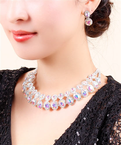 クリスタルビジュ—の華やかなデザイン♪ パーティースタイルのコーディネートのアクセントにおすすめ◎ 豪華なネックレスセットです!