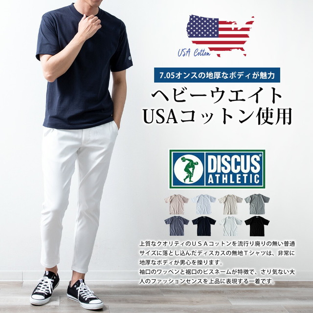 Tシャツ メンズ 半袖 ブランド 無地 厚め 厚手 tシャツ ディスカス 実用的 メンズファッション カットソー 半袖tシャツ ヘビーウェイト ブルーグレー おしゃれ