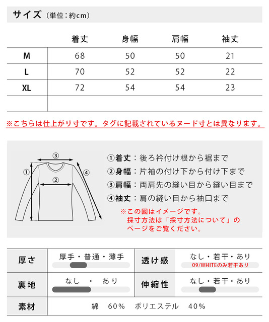 | サイズ | 着丈 | 身幅 | 肩幅 | 袖丈 |
