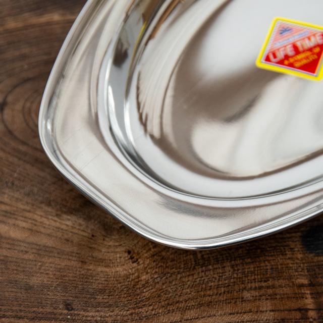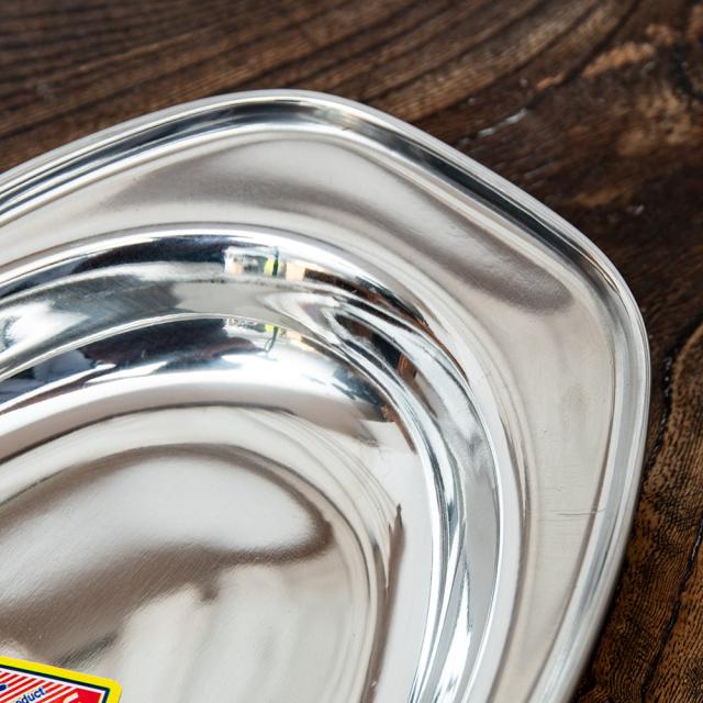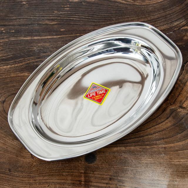 カレーやビリヤニなどにぴったりな、ステンレス製のオーバルプレートです。インドでは食堂などで使われております。重ねて収納できますので、食器棚のジャマにもなりません。■丈夫で衛生的!