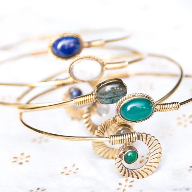 インドの天然石付きメタルバングル / バングル、パワーストーン、メタルバングル、アクセ、アクセサリー アクセ 【インドとアジアのアクセサリー