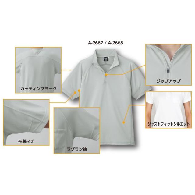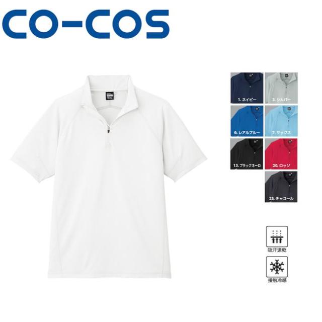 コーコス A-2667 冷感・吸汗速乾半袖ジップアップ | 作業着 作業服 運輸 建築 販売 現場 オフィス ユニフォーム メンズ レディース
