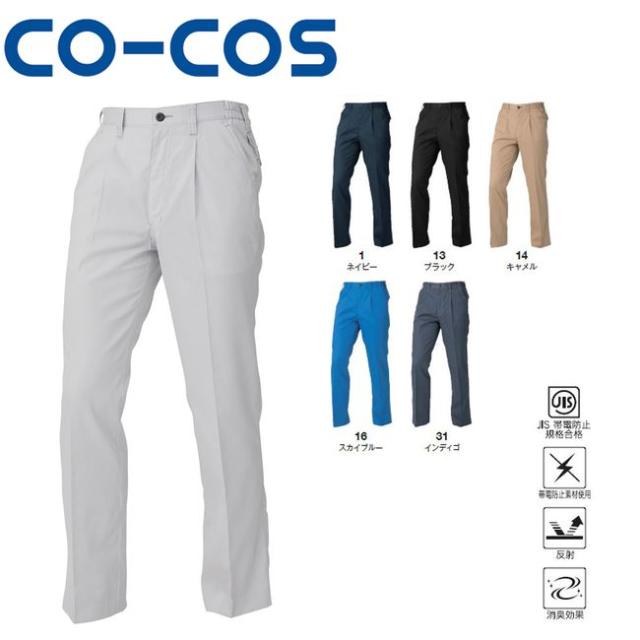 コーコス A-4074 ワンタックスラックス(脇シャーリング) JIS 帯電防止 反射 消臭 | 作業着 作業服 運輸 建築 販売 現場 オフィス ユニフォーム メンズ ワンタック 春 夏 秋 冬 春夏 秋冬 パンツ おしゃれ かわいい 男性用 女性用