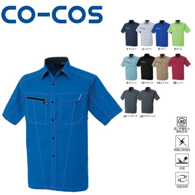 コーコス A-4077 半袖シャツ JIS 帯電防止 反射 消臭 | 作業着 作業服 運輸 建築 販売 現場 オフィス ユニフォーム メンズ レディース 半袖 消臭 男性 女性 おしゃれ カジュアル かっこいい かわいい カラフル 春 夏 秋 冬 春夏 秋冬 オールシーズン シャツ
