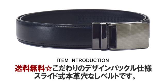 送料無料☆バックルサイズをリニューアル!穴あけ不要スライドロック本革ベルト
