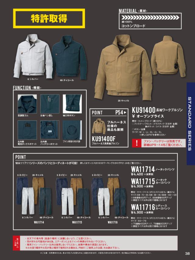 サンエス SUN-S 空調 風神服 KF91400 長袖ワークブルゾン薄生地 WA11711シリーズパンツに対応 ※ファン・バッテリー別売 | 風神 服のみ 綿 100% おしゃれ カジュアル かっこいい KU91400