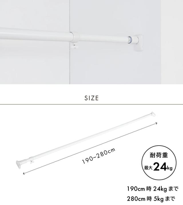 ※耐荷重の目安:取り付け寸法190cm時スーツ12着(1着2kg換算)