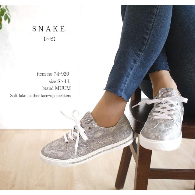 MUUM ムーム ローカット スニーカー レディース 靴 黒 白 ヘビ おしゃれ 履きやすい ゴージャス ビジュー キラキラ 3e 旅行