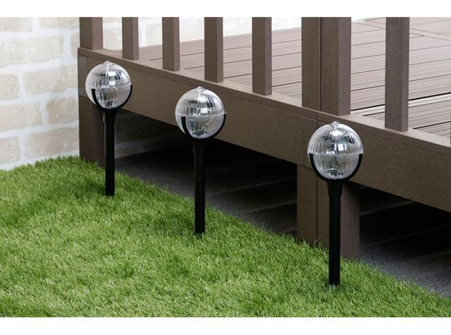 地面に差し込むだけなので簡単に設置でき、面倒な組立は必要ありません。昼間は庭のインテリアに。