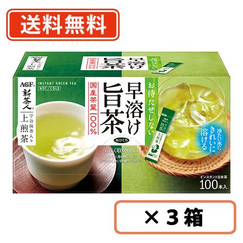 AGF 新茶人 早溶け旨茶 宇治抹茶入り上煎茶スティック 100本×3箱 送料無料(一部地域を除く)