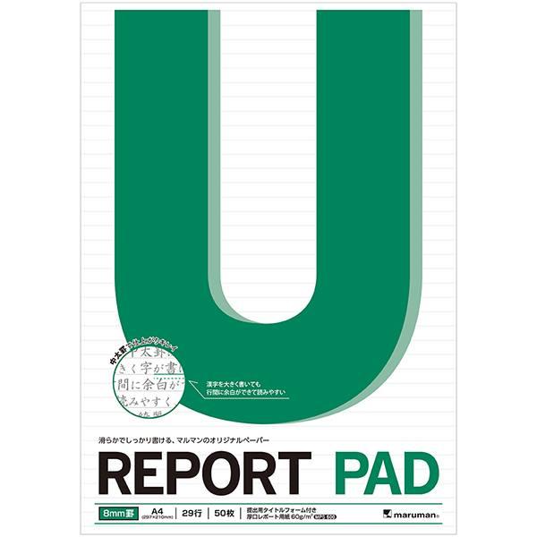 レポート パッド 8mm罫 A4 書きやすい マルマン 文具 事務用品 メモ帳 仕事 会議 ミーティンング 記録 筆記用紙 滑らか しっかり 書ける 日本製