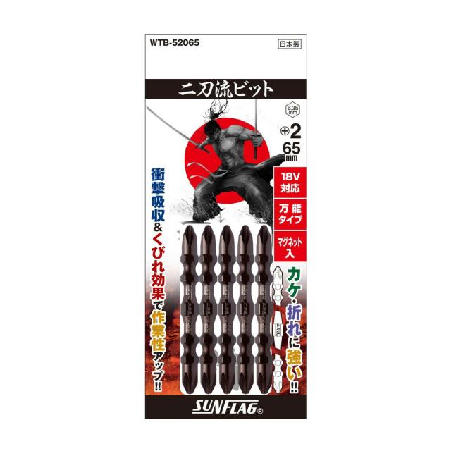 SUNFLAG サンフラッグ 電動ドライバ-ビット 二刀流ビット 18V 14.4V対応 5本組 +2×65mm WTB-52065