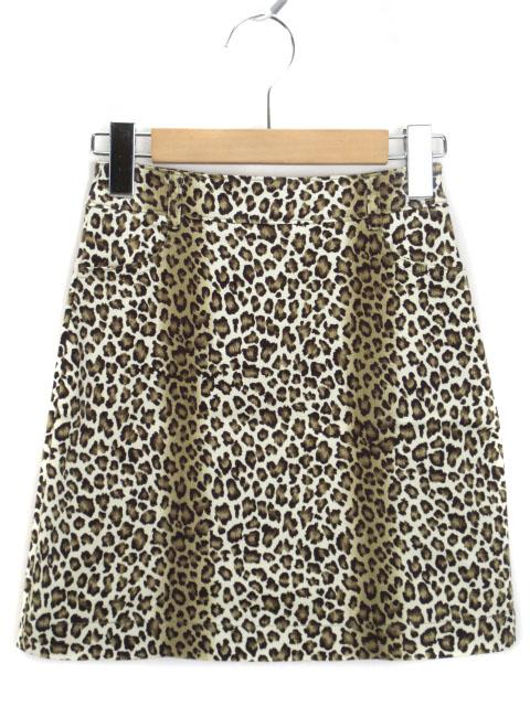 【中古】アンドレルチアーノ ANDRELUCIANO スカート ミニ タイト ヒョウ柄 レオパード ストレッチ ベージュ レディース