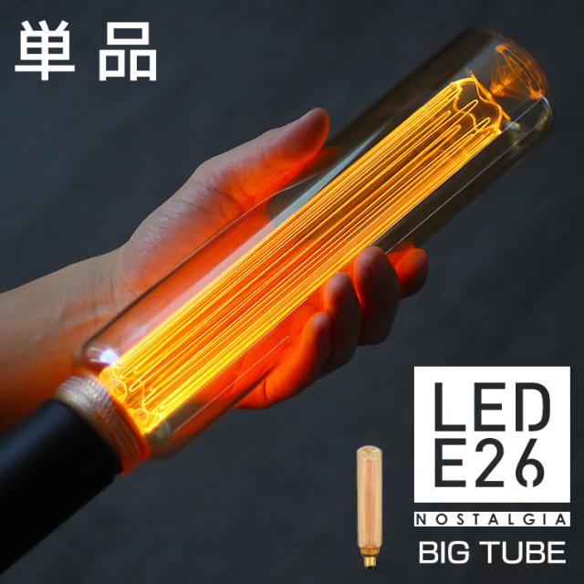 単品【ノスタルジアBIGチューブ】エジソン バルブLED電球 E26 大きい 長い ビッグ 筒型電球 フィラメント風エジソン電球 眩しくない 電球色 ゴールド アンバー レトロ シリンダー電球 調光器対応 agesugi_ska