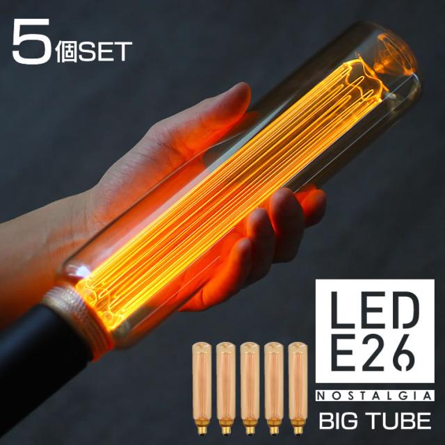 【5個セット】【ノスタルジアBIGチューブ】エジソン電球 大きいLED電球 エジソンバルブLED E26 ビッグチューブゴールド 筒型 太い 長い レトロ ノスタルジック 裸電球 調光器対応 agesugi_ska